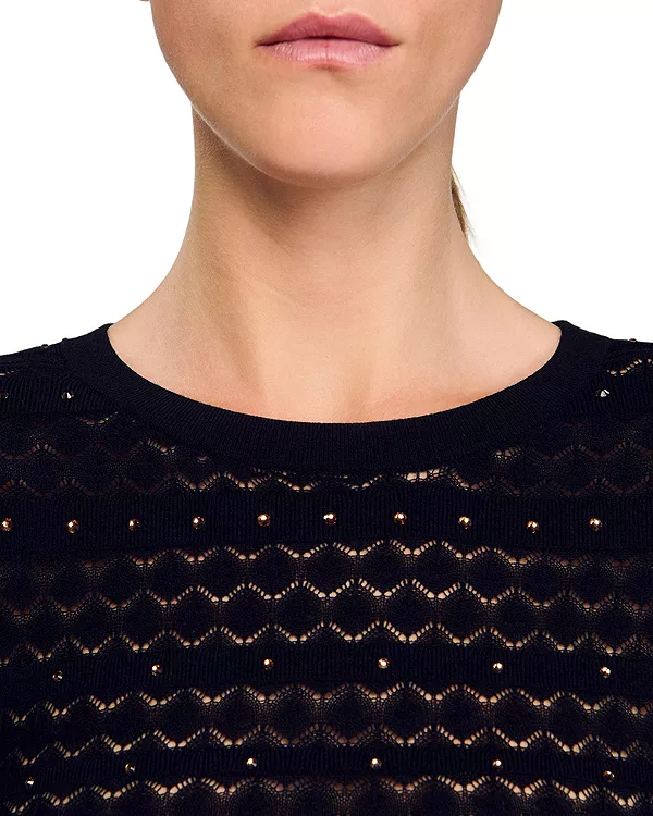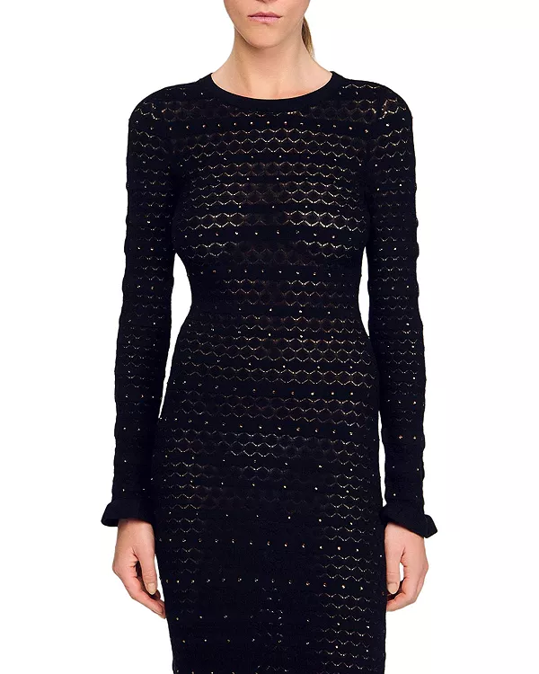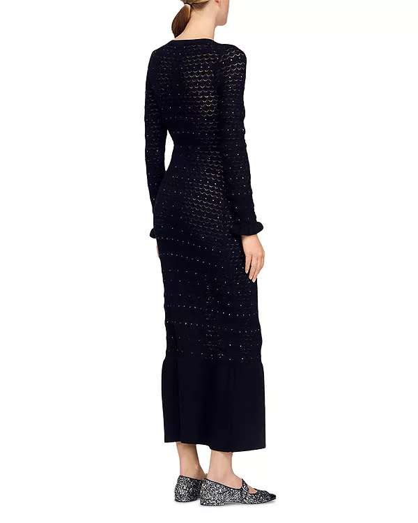 Вязаное макси-платье со стразами Sandro, черный