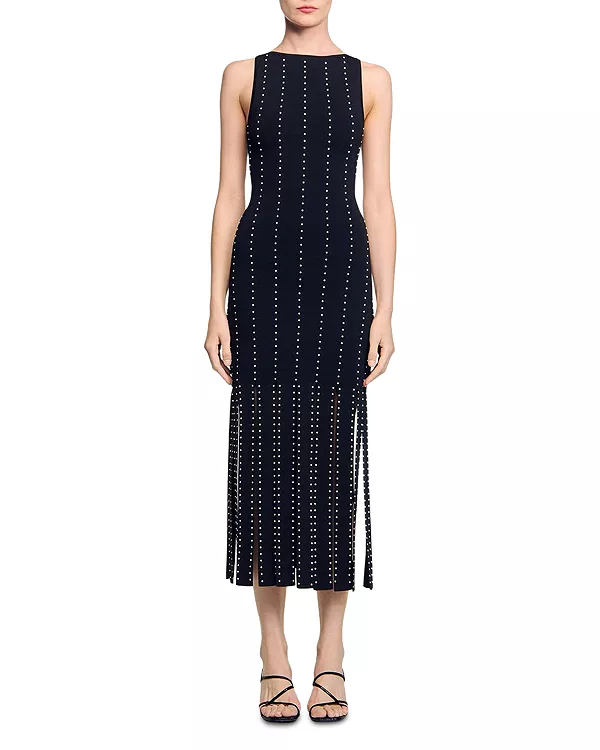 Вязаное платье макси с бахромой Sandro, черный 30 808₽