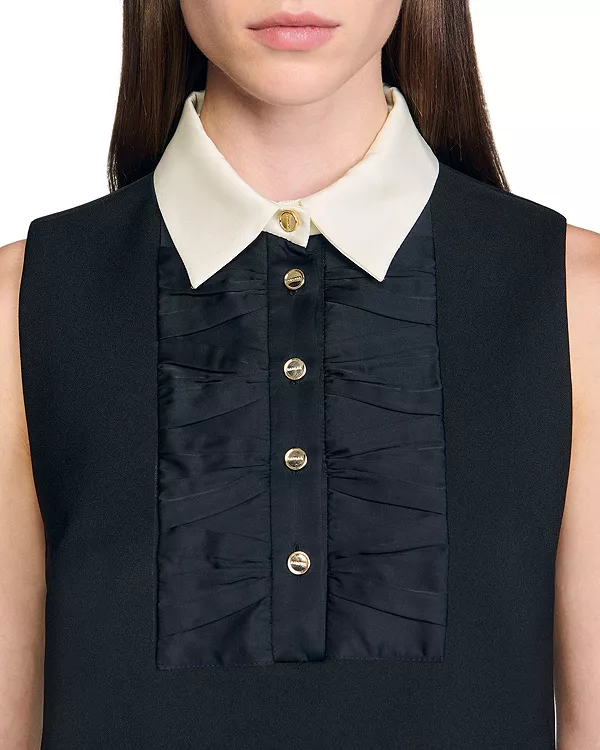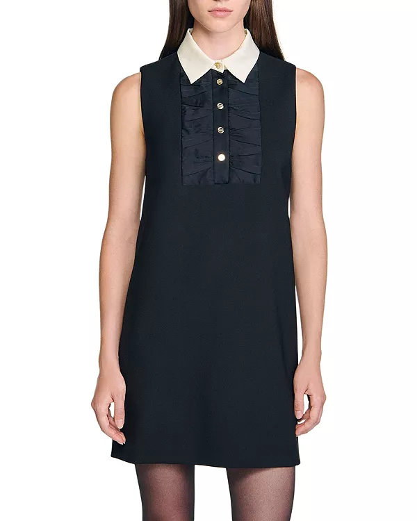 Короткое платье с контрастным воротником Sandro, черный