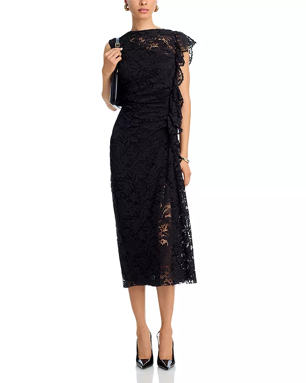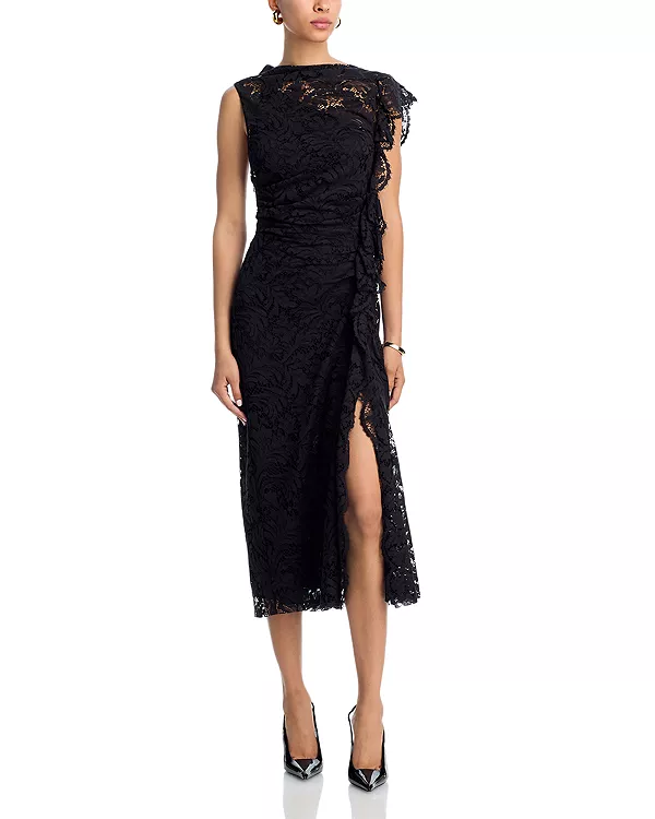Прозрачное кружево, оборка и сборка слева, разрез спереди слева