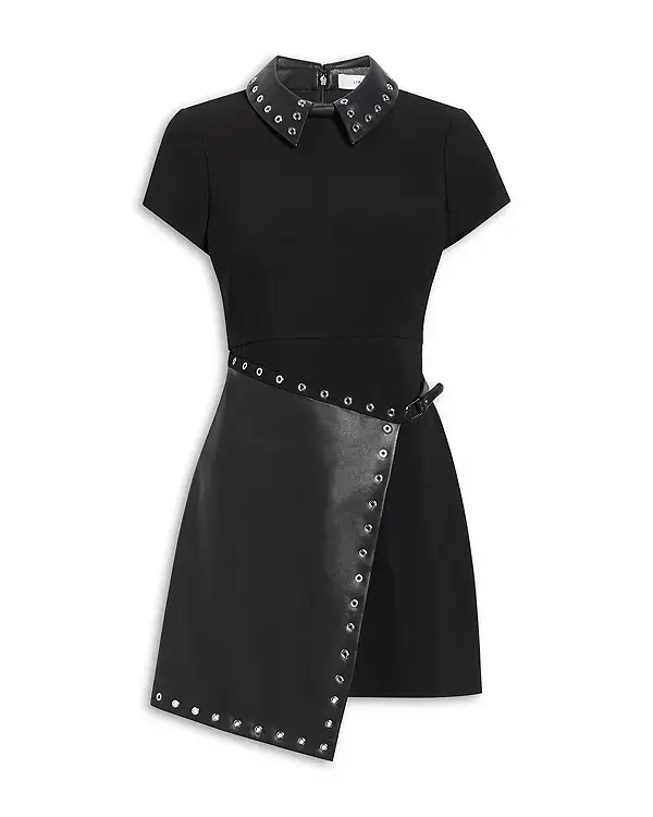 Воротник из искусственной кожи и деталь с пряжкой на юбке