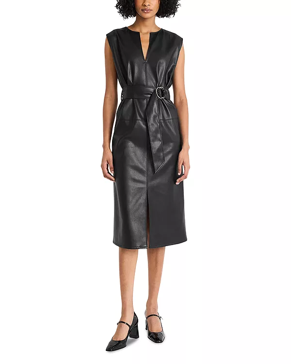 Платье-Миди оверсайз из искусственной кожи Luxely, черный