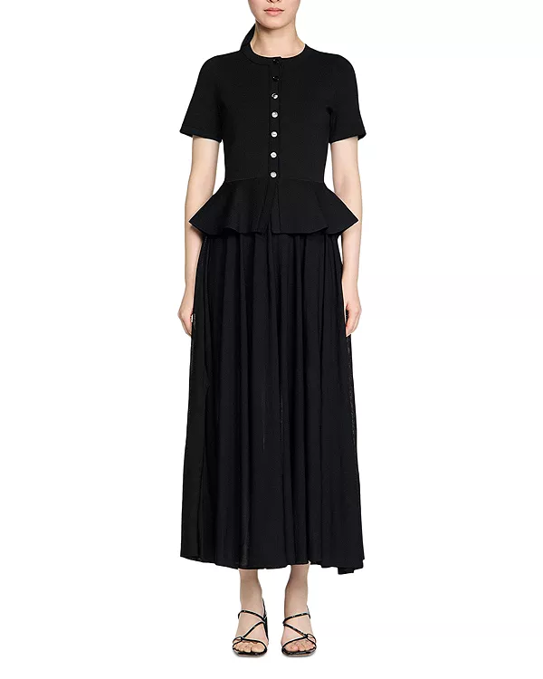 Длинное вязаное платье с баской Judith Sandro, черный