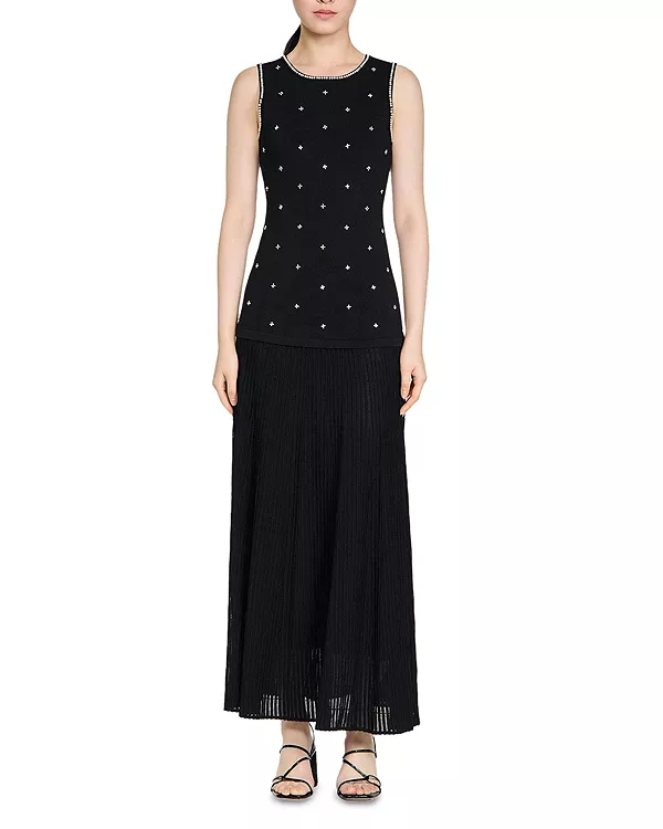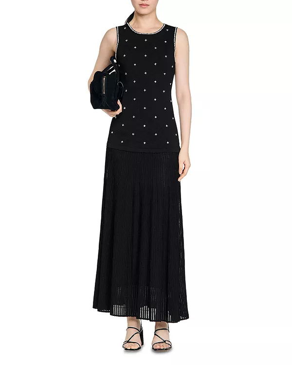 Платье-Макси «Теодора», украшенное вышивкой Sandro, черный