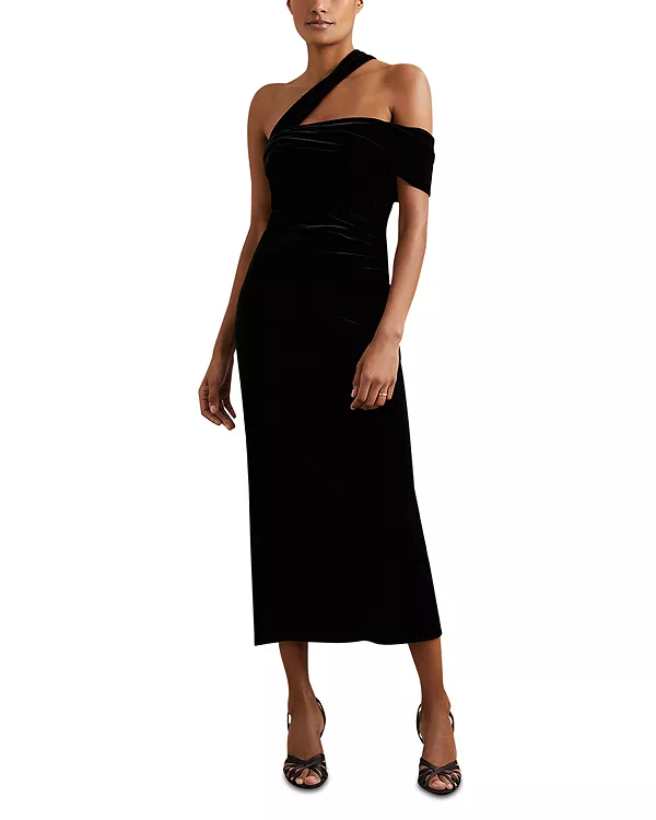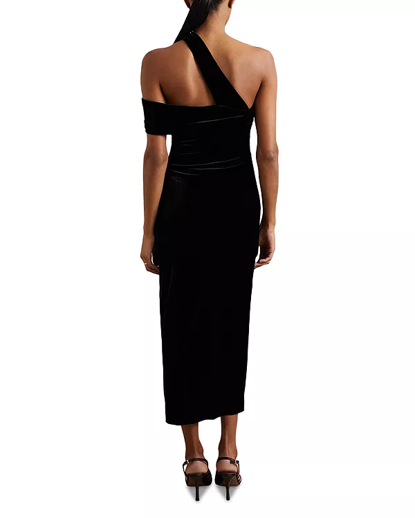Бархатное миди-платье Dalia на одно плечо Reiss, черный
