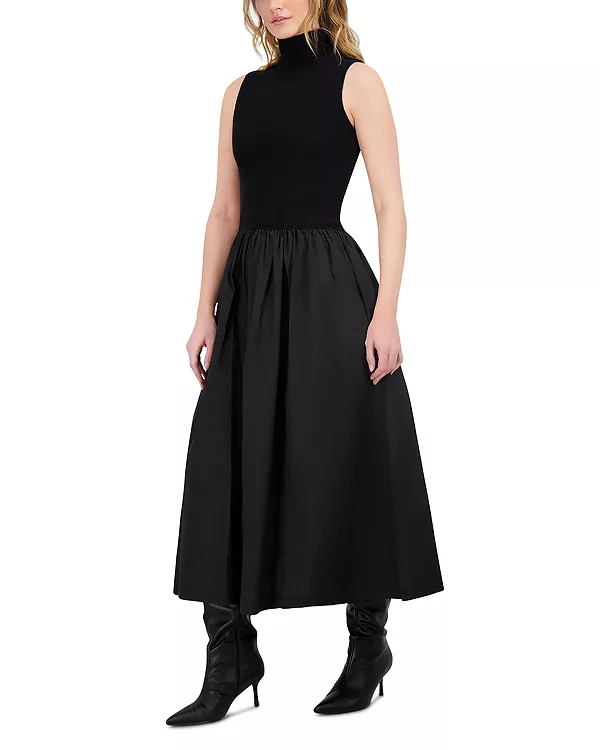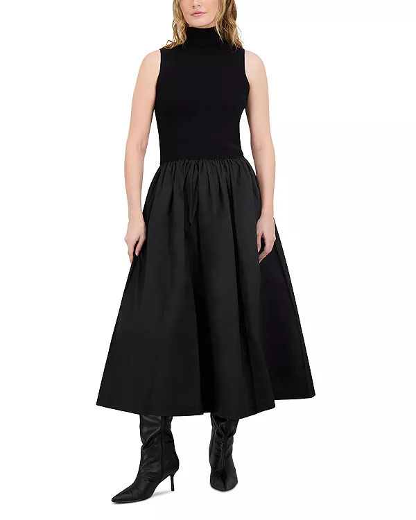 Платье-Водолазка, выполненное в смешанной технике Point, черный