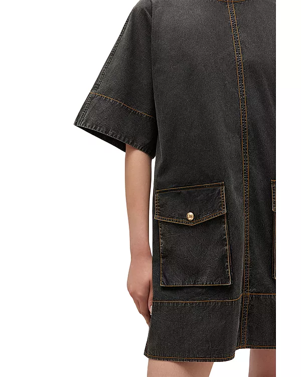 Платье-Кимоно из выстиранной ткани Ganni, черный