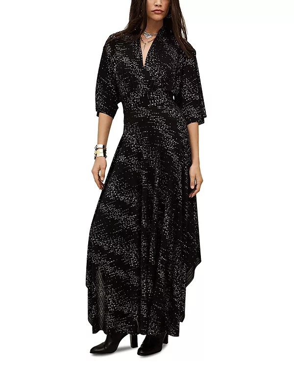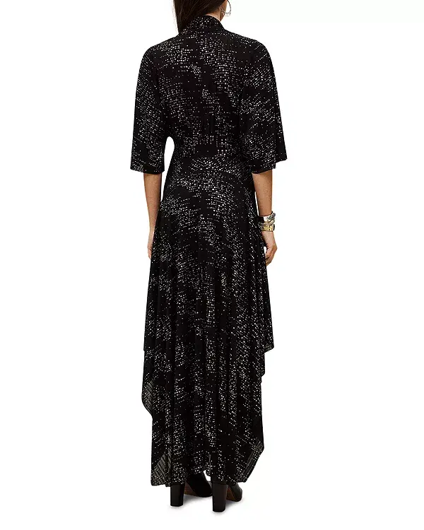 Приблизительно 137 см от самой высокой точки плеча до подола, для размера S