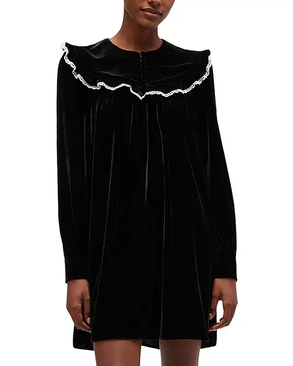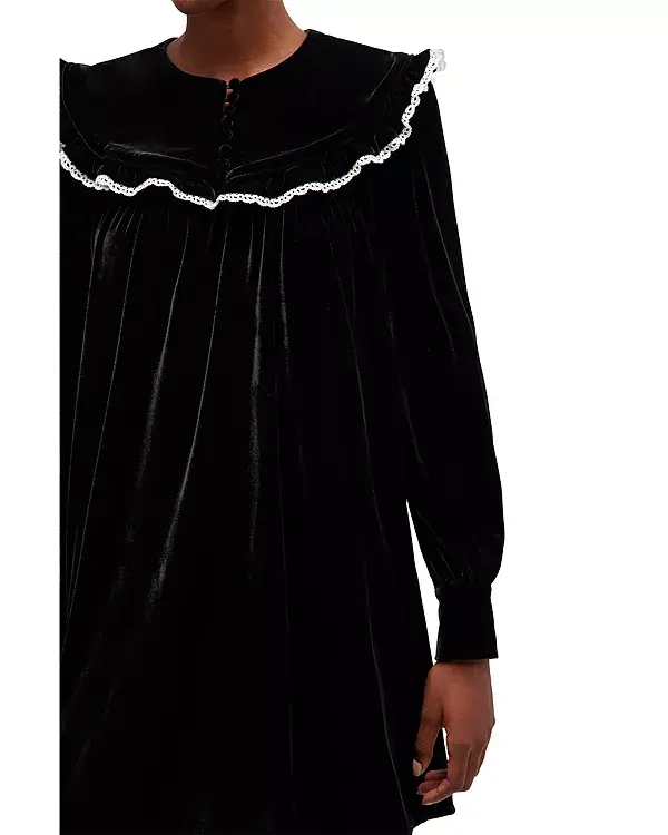 Бархатное платье с оборками Ganni, черный 42 270₽