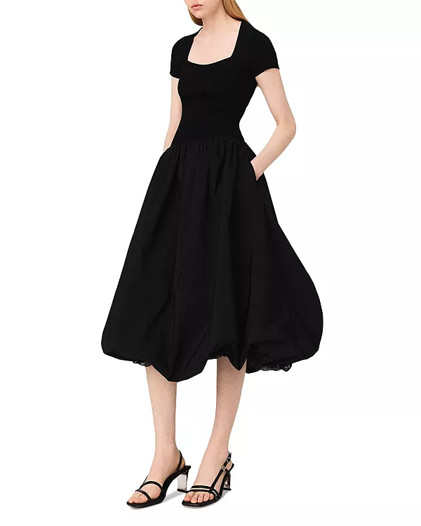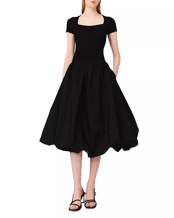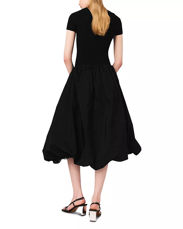 Длинное платье из трикотажа и тафты Maje, черный 22 916₽