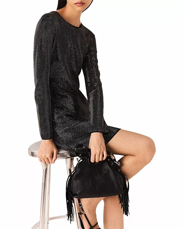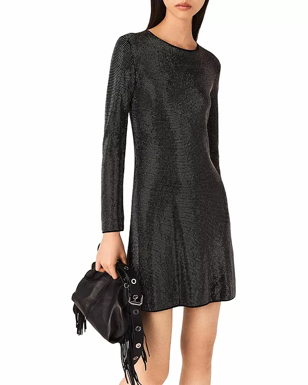 Короткое вязаное платье со стразами Maje, черный 36 131₽