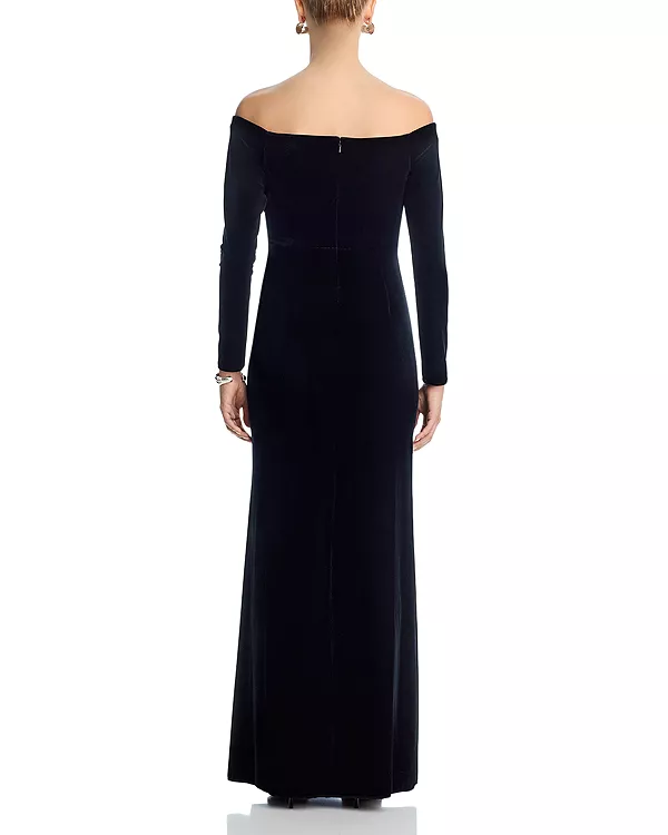 Бархатное платье с открытыми плечами - эксклюзив Aqua, черный