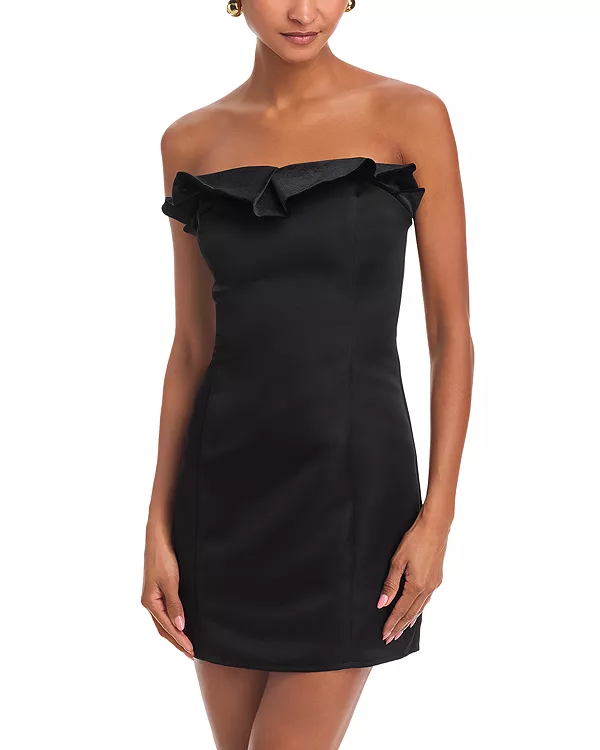 Мини-Платье без бретелей с оборками - эксклюзив Aqua, черный