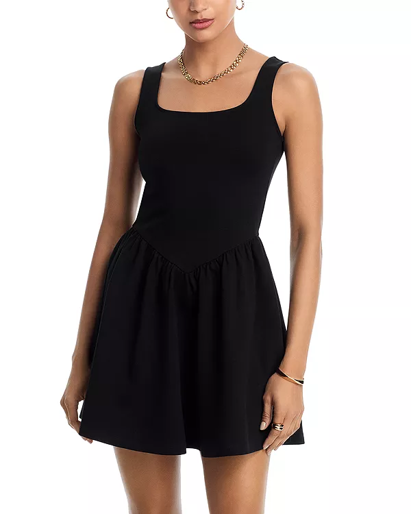 Мини-Платье из ткани понте с квадратным вырезом - эксклюзив Aqua, черный