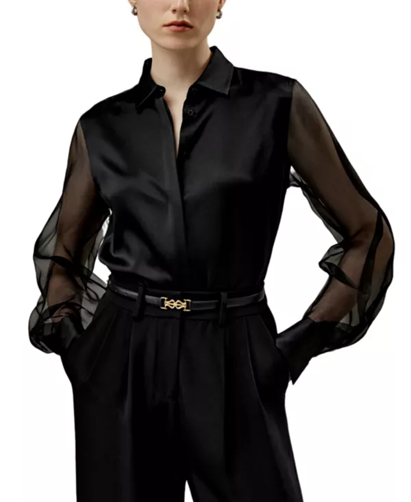 Бренд: Lilysilk Цвет: черный Подчеркните свой стиль с помощью нашей шелковой рубашки Ethereal Silk Shirt - сочетания элегантности и женственности. Изготовленная из роскошного шелка, эта рубашка имеет воздушные, строгие рукава с легким полупрозрачным эффектом, который прекрасно контрастирует с гладкой атласной отделкой. Идеальная для любого случая, она сочетает в себе изысканность и универсальное очарование.