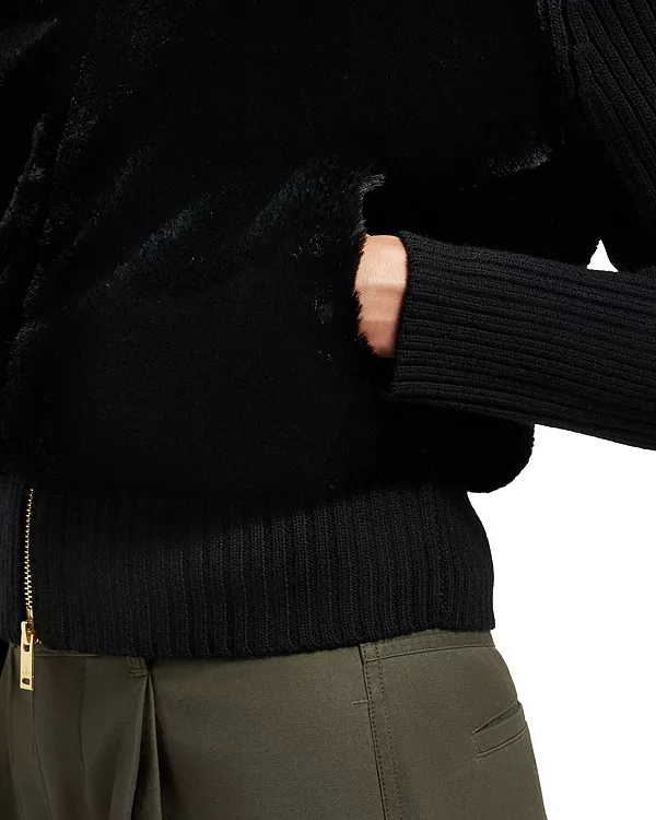 Искусственный мех: 100% полиэстер; трикотаж: 97% шерсть/2% нейлон/1% эластан; подкладка: 95% полиэстер/5% эластан