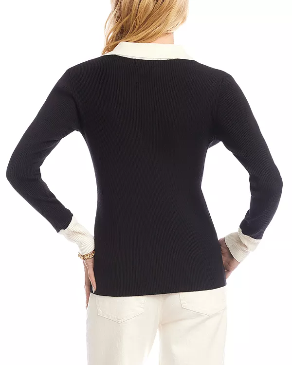 Свитер с воротником в рубчик Karen Kane, черный 10 069₽
