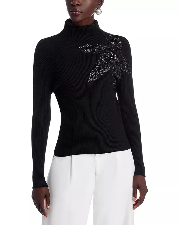 Свитер с цветочным узором из бисера Nancy Yang, черный 11 770₽