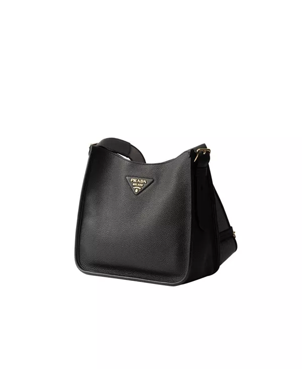 Бренд: Prada Цвет: черный Эта универсальная сумка Prada, украшенная плетеным ремешком с логотипом и культовой металлической треугольной надписью, отличается элегантным и функциональным дизайном, дополненным фирменными элементами бренда.