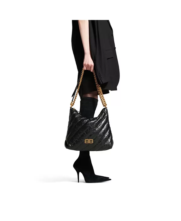 Стеганая сумка-хобо Crush Balenciaga, черный