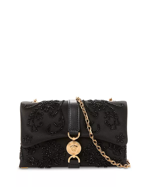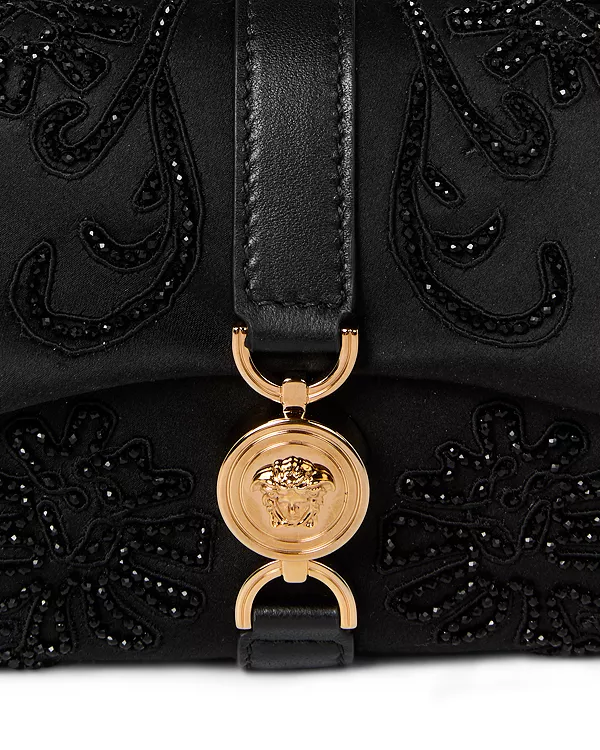Сумка через плечо Kleio из атласа с бисером Versace, черный 216 513₽