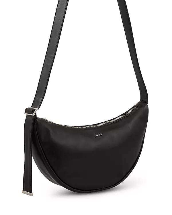 Маленькая кожаная сумка-хобо Sandro, черный 47 453₽