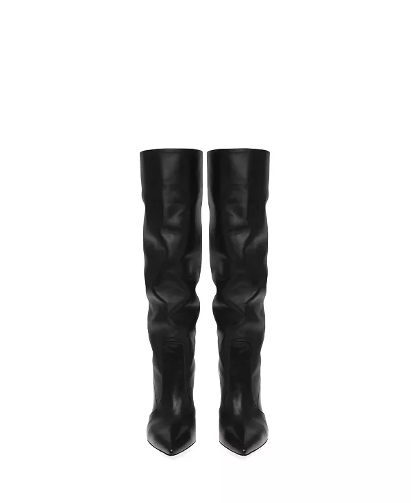 Особенности: Заостренный носок Надеваются без застежек Hansen - это фирменный стиль. Эти ботинки отличаются заостренным носком, каблуком-шпилькой 85 мм и силуэтом с оборками. Изготовлено вручную в Италии. 100% телячья кожа Сделано в Италии