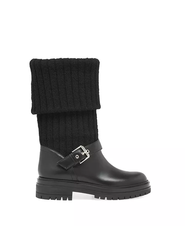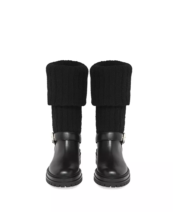 Особенности: Закругленный носок Без застежек Ботинки Thurso, изготовленные из кожи и ребристой эластичной трикотажной ткани, представляют собой байкерские ботинки без застежек с резиновой подошвой в тон и каблуком высотой 40 мм. Деталь ремешка украшена металлической пряжкой и люверсами. Ручная работа, сделано в Италии. Каблук 0,8 дюйма 30% телячья кожа/70% ткань Сделано в Италии