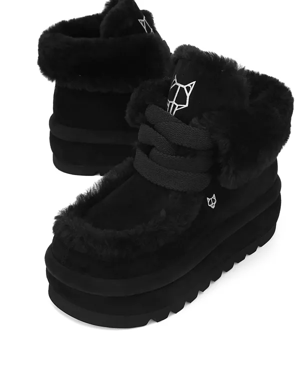 Особенности: Закругленный носок Застежка без застежки Шнурки шириной 15 мм | Форма носка: асимметричная | Высота платформы: 60 мм | Металлическая заклепка 14 мм | Замшевая внешняя отделка | Внутренняя отделка из овчины | Кожаная стелька | Мягкая, легкая и упругая подошва Импортные