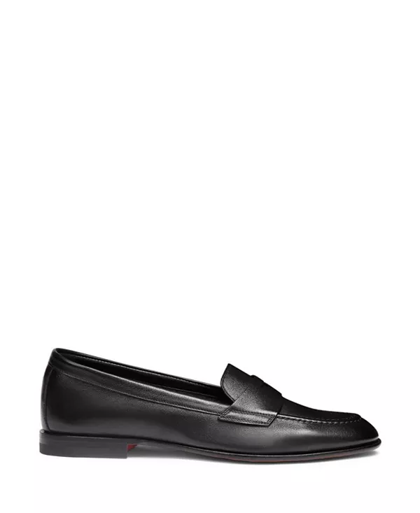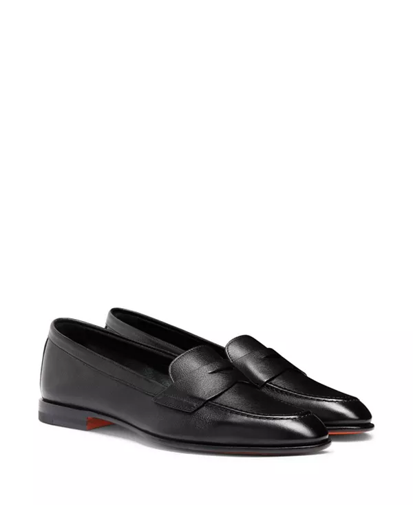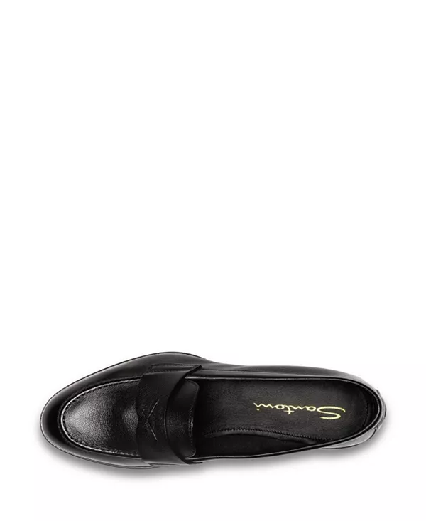 Бренд: Santoni Цвет: черный Эти женские лоферы воплощают в себе изысканные линии культовых лоферов с монеткой, переосмысливая их благодаря мастерству Santoni, выполненному из роскошной кожи и отделанному вручную рельефной строчкой. Благодаря утонченному силуэту и зауженному носку, эти туфли станут незаменимым элементом делового стиля и элегантных городских образов.