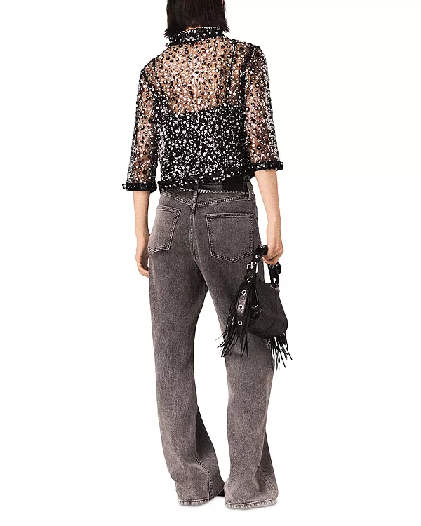 Топ из тюля, расшитый пайетками Maje, черный