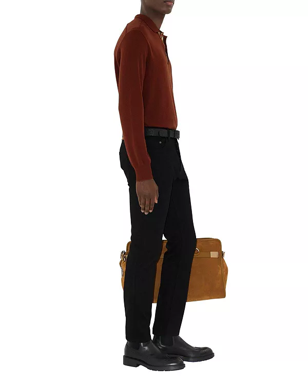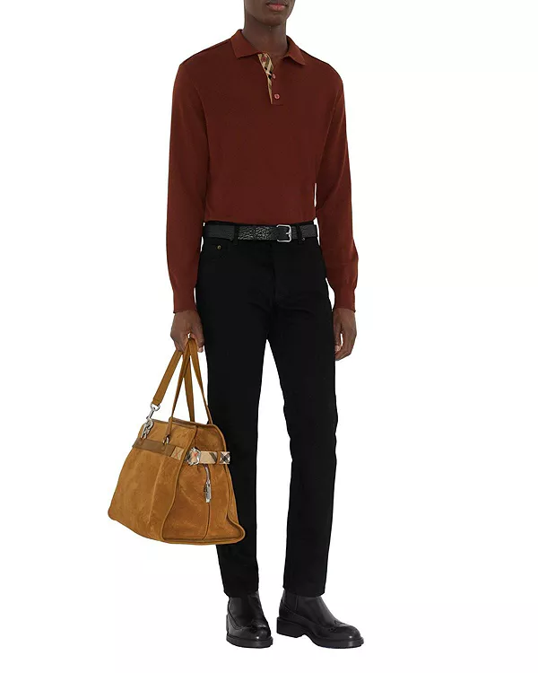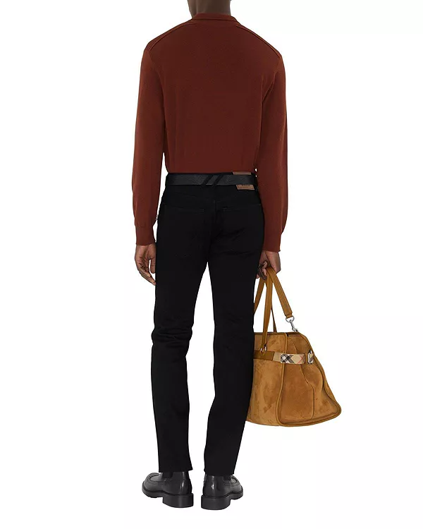 Джинсы итальянского производства из денима, зауженного кроя. Модель с пятью карманами украшена клетчатой нашивкой Burberry и замшевой нашивкой с тисненым изображением рыцаря-наездника.