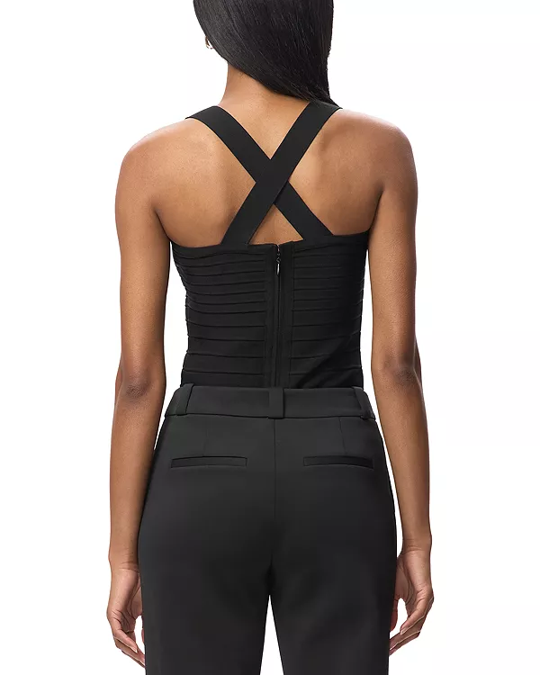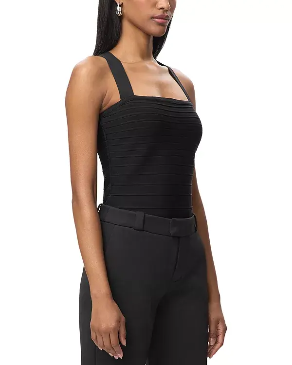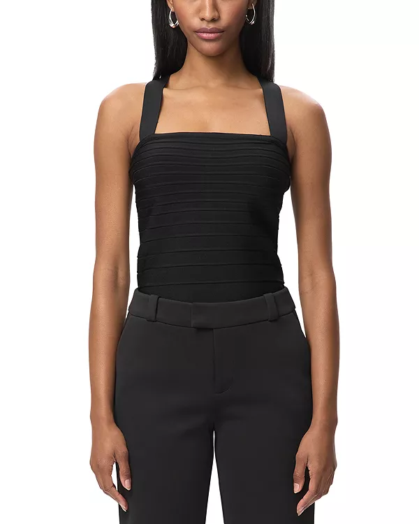 Топ Serena, входящий в коллекцию Hervé Léger Resort '26, выполнен из фирменной бандажной ткани, имеет облегающий силуэт без рукавов.