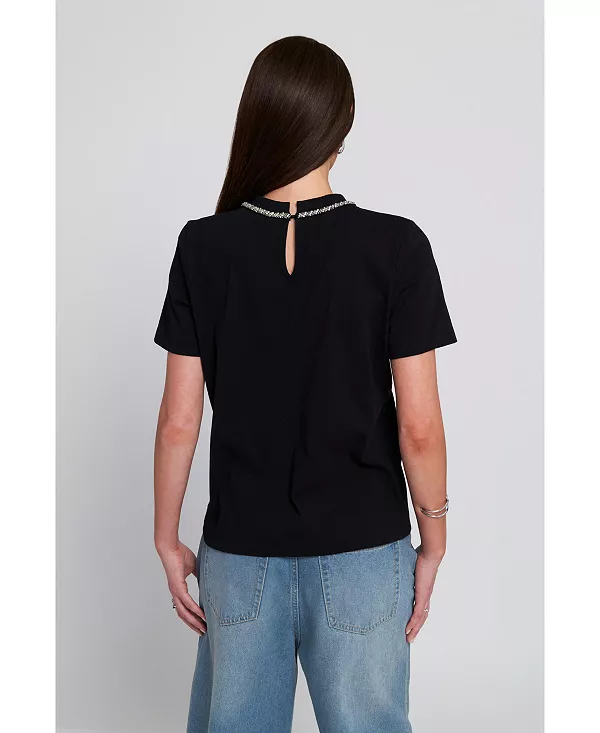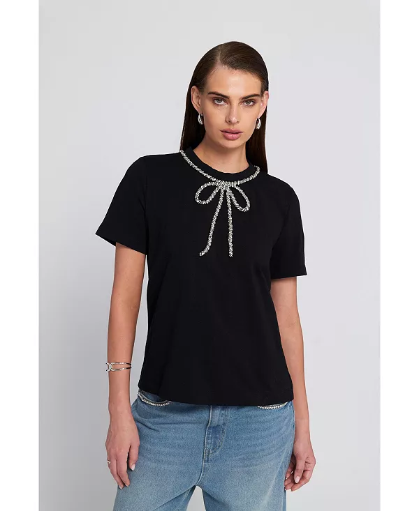 Футболка с бантом, украшенным стразами Elle Collection, черный