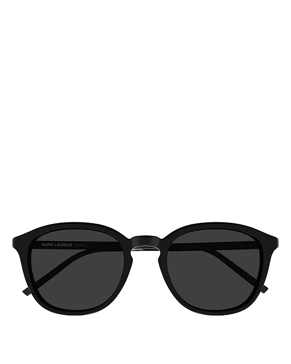 Круглые солнцезащитные очки, 53 мм Saint Laurent, черный