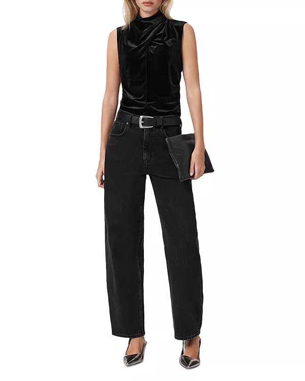 Бархатный топ Tia с драпировкой Allsaints, черный