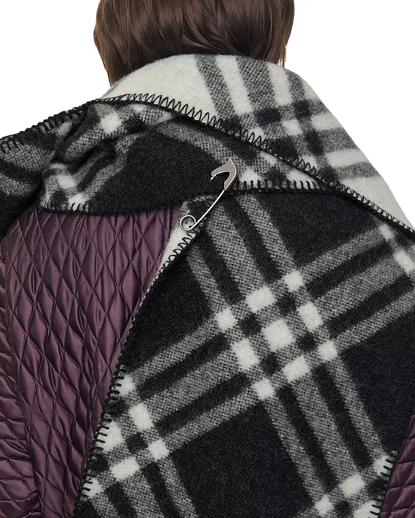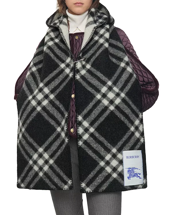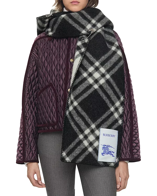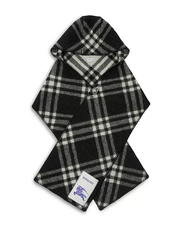 Шерстяной шарф с капюшоном в клетку Burberry, черный