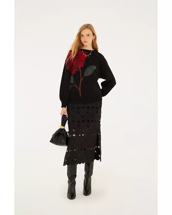 Черная юбка миди с сердечками Farm Rio, черный 35 810₽