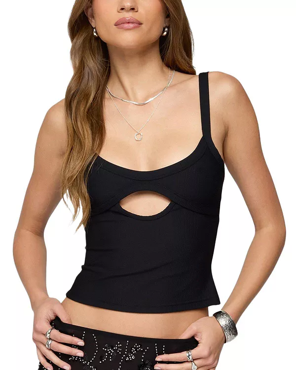 Топ Карин в рубчик с вырезами Edikted, черный