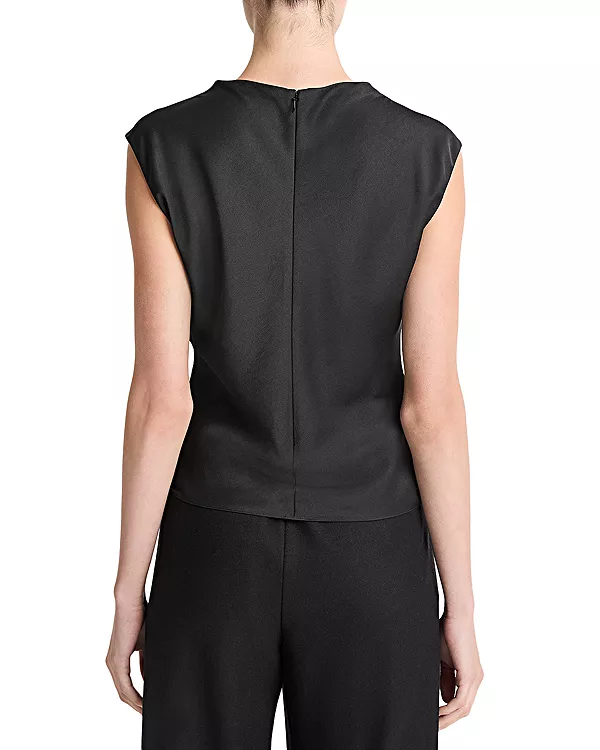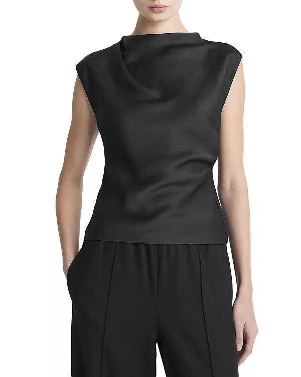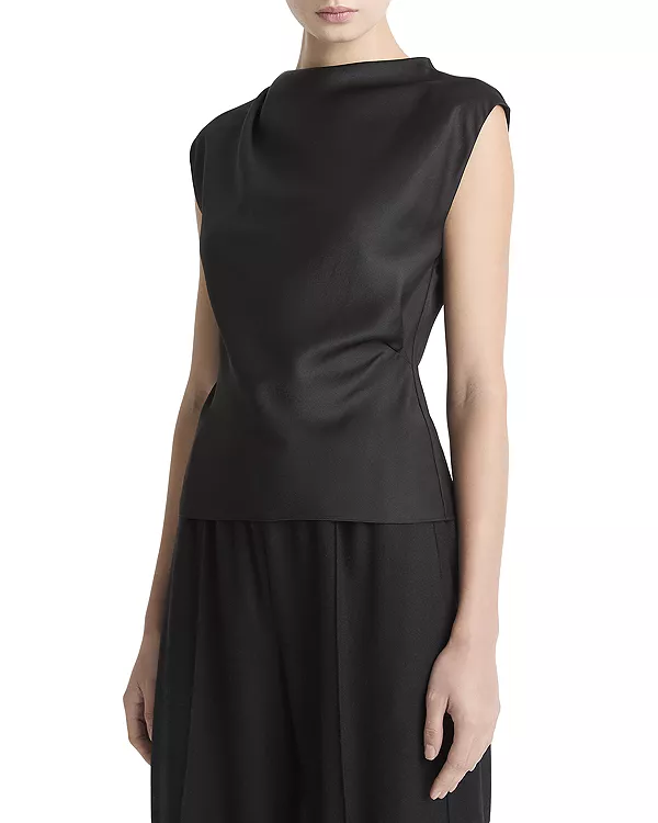 Топ с драпировкой и воротником-хомутом Vince, черный