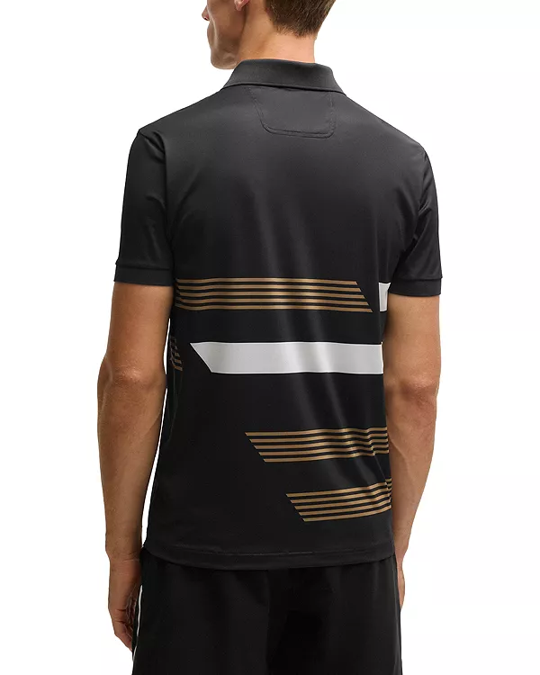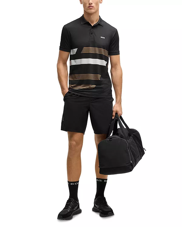 Надпись BOSS на левой стороне груди, горизонтальные полосы спереди и сзади