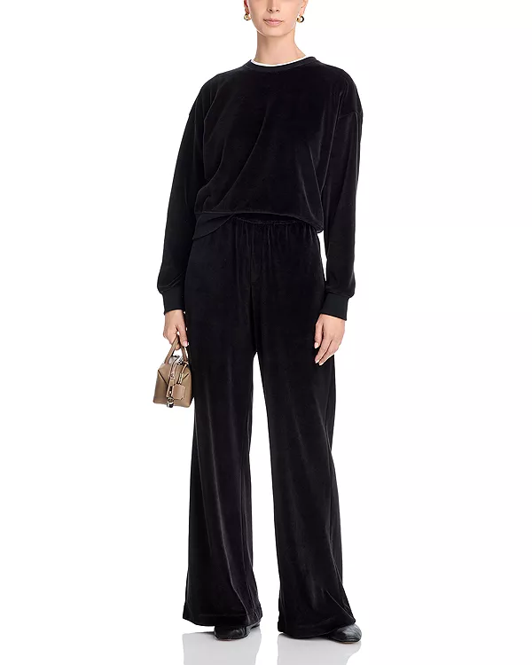 Велюровые расклешенные брюки Atm, черный 33 701₽