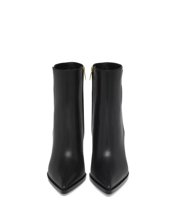 Особенности: Острый носок Функциональная внутренняя застежка-молния Ботильоны Granada с острым носком и массивным каблуком 85 мм изготовлены из кожи. Дизайн дополнен внутренней нейлоновой молнией и металлическим люверсом. Ручная работа, сделано в Италии. 100% телячья кожа Сделано в Италии