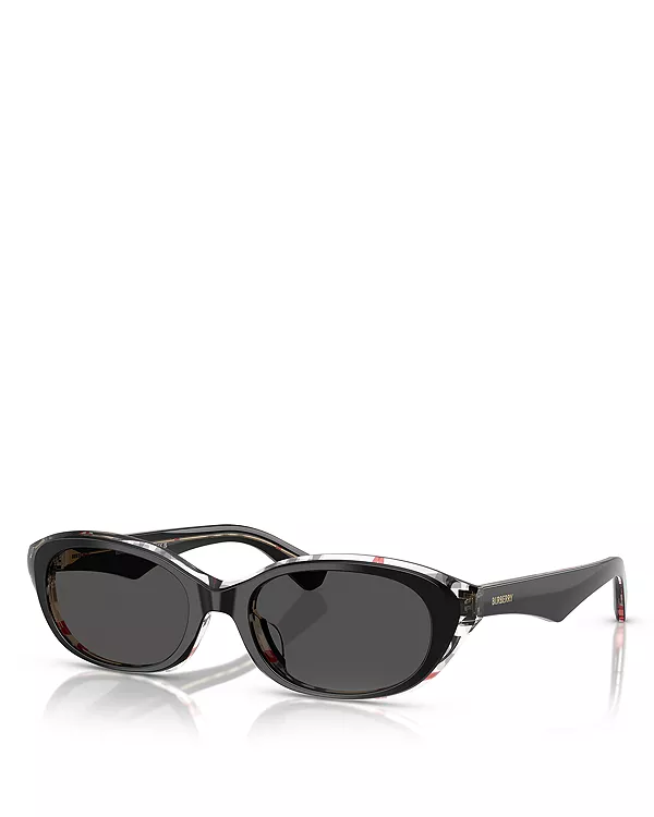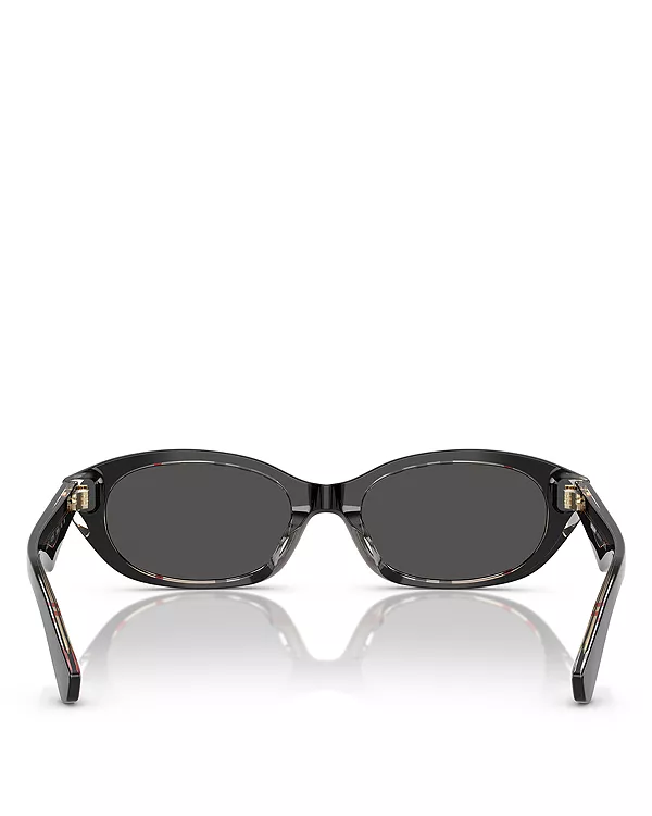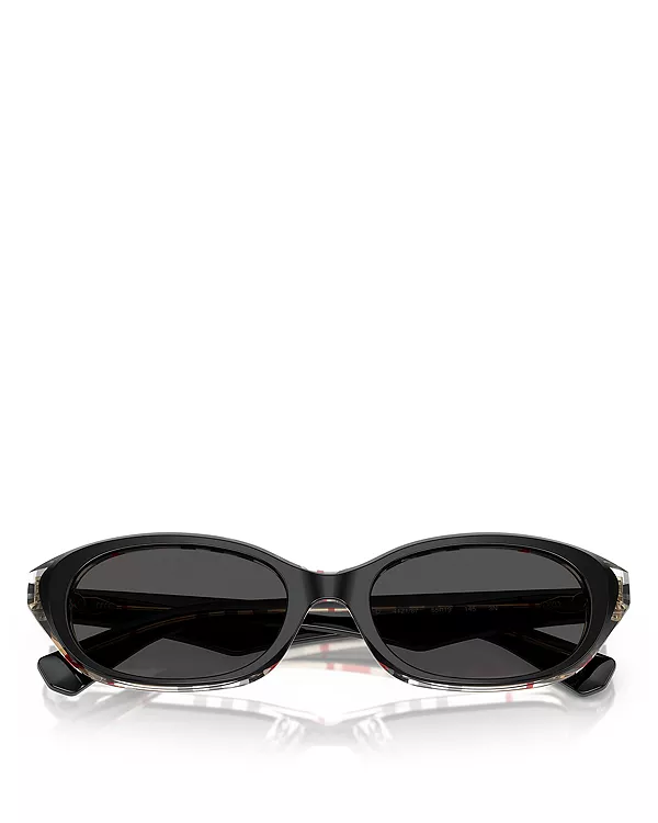 Эти солнцезащитные очки Burberry в овальной оправе украшены винтажным черным клетчатым узором, темно-серыми линзами и фирменным логотипом на дужке.