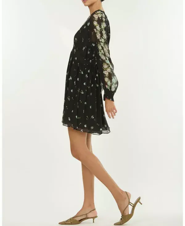 Платье Emerson, изготовленное из 100% органического шелкового шифона, отличается легкой, фактурной текстурой и струящимся силуэтом. Глубокий V-образный вырез, присборенная талия и пышные рукава подчеркивают фигуру, придавая ей непринужденный винтажный шарм.