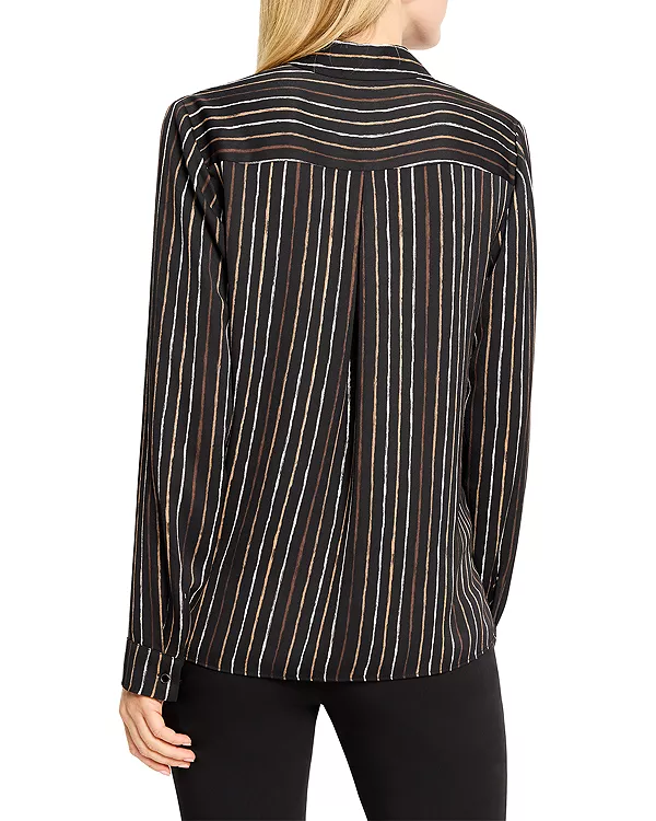 Бренд: Nic+Zoe Цвет: черный Новая интерпретация любимой модели прошлых сезонов, обновленная новыми цветами, идеально подходящая для важных дней в офисе, изысканных вечерних образов или в качестве повседневной вещи для выходных. Полоски на нагрудных карманах разбавляют общий узор, а атласная шифоновая ткань обеспечивает элегантный вид и комфорт в течение всего дня.
