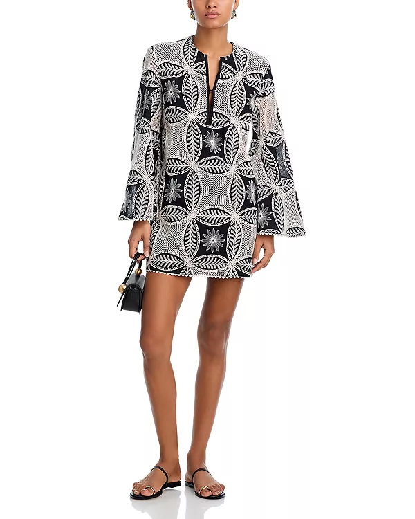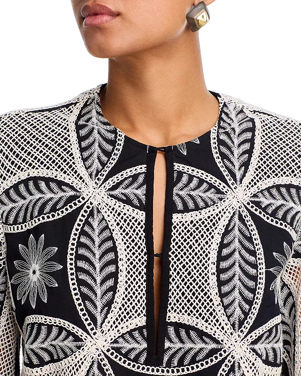 Круглая вышивка и сетчатые вставки по всей поверхности