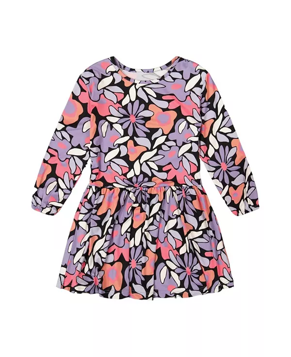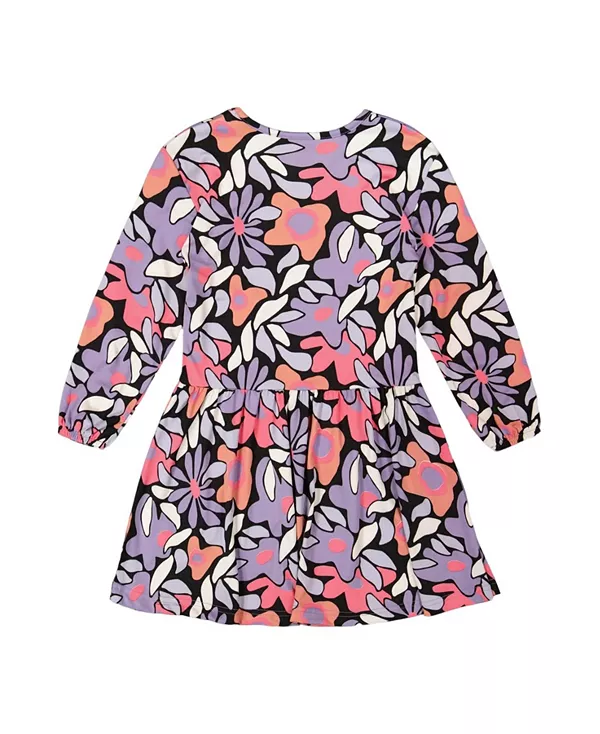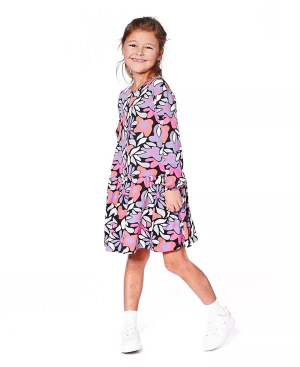 Бренд: Deux Par Deux Цвет: мультиколор Силуэт с заниженной талией, расклешенная юбка и яркий принт по всей поверхности делают это маленькое платье идеальным для вечеринок, встреч с друзьями и семейных прогулок! Это повседневное платье из ультрамягкого эластичного трикотажа имеет длинные рукава с эластичными манжетами, круглый вырез и принт с изображением кошек по всей поверхности.