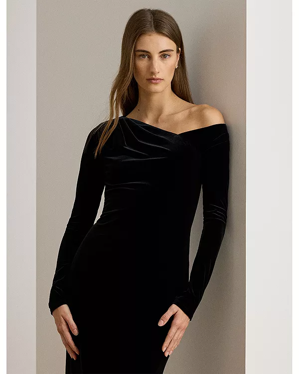 Бархатное асимметричное платье Ralph Lauren, черный 33 926₽