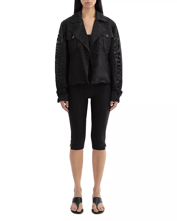 Два нагрудных кармана с клапанами на пуговицах, два прорезных кармана на талии